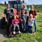 Auch auf dem Treckersitz durften die Schüler:innen Platz nehmen. Anschließend probierten alle noch den leckeren Traubensaft.